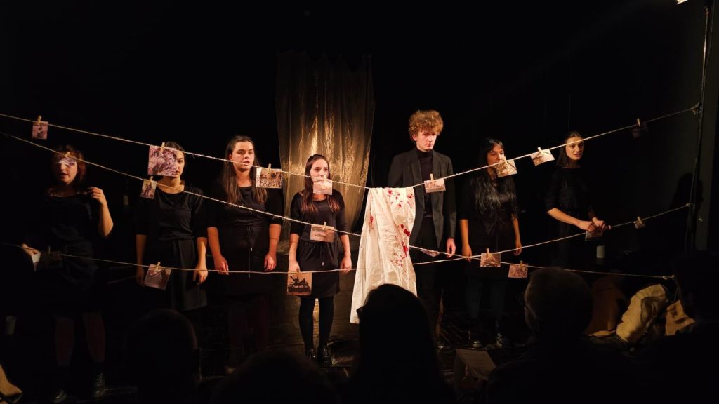 As part of their work on acting technique, third-year undergraduate students of Acting and Puppetry at the Academy of Arts and Culture in Osijek prepared a production based on Sophocles’ Antigone. One of the most significant tragedies of both ancient Greek and world literature served as a foundation for exploring ritual theater, the role of the chorus, and the protagonist in Greek tragedy. The play’s central themes—divine and human laws, forgiveness, and sacrifice for higher causes—remain ever relevant. This exploration is further enriched by the opposition of masculine and feminine principles, with General Creon set against six actresses who take on the role of Antigone as well as all other characters. The result is a timeless truth: history teaches us nothing—wars still rage, hatred persists, and the cycle of violence refuses to end.