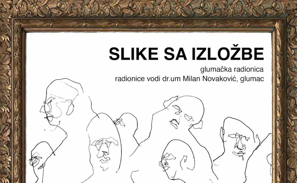 Osnova za istraživački rad na ovoj radionici bit će umjetničke slike koje će sudionici „oživjeti“ i napraviti kratke dramske scene. Ove slike zapravo će biti samo okvir koji će nam poslužiti da se bavimo različitim dijelovima glumačkog procesa. Kako bi ispričali priču koju umjetnička slika potencijalno sadrži, bavit ćemo se najprije: Metodom improvizacije; Vježbama za skicu karaktera, Ritmom i tempom karaktera/ ritmom i tempom scene, Istraživanjem glumačkih sredstava s ciljem njihove potpune redukcije. Kao krajnji rezultat imat ćemo 3 etide na osnovu iste slike, gdje ćemo pokušati prikazati na koji način se priča, karakteri i njihovi međusobni odnosi mijenjaju u odnosu na različitu upotrebu tempa i ritma i korištenje različitih postupaka (ili izostavljanje istih).